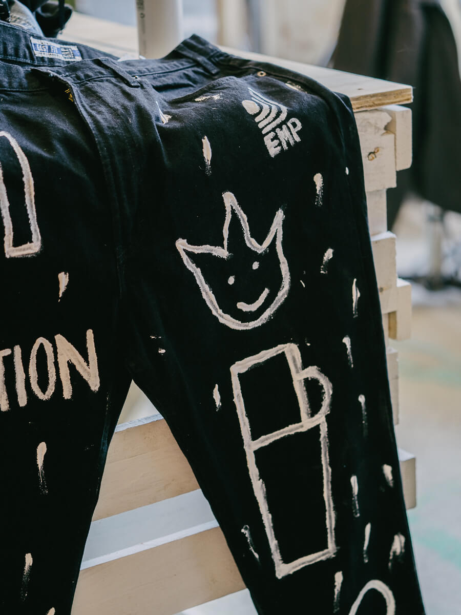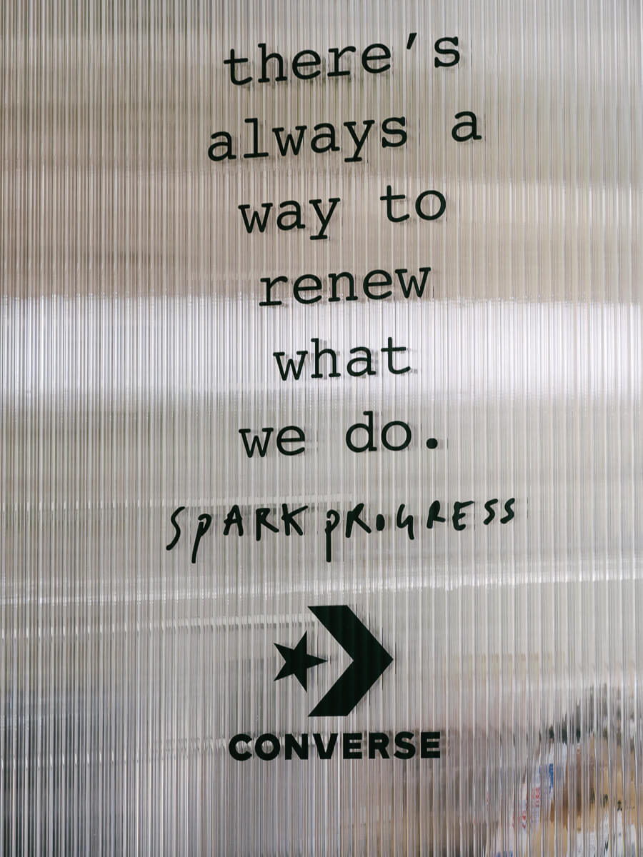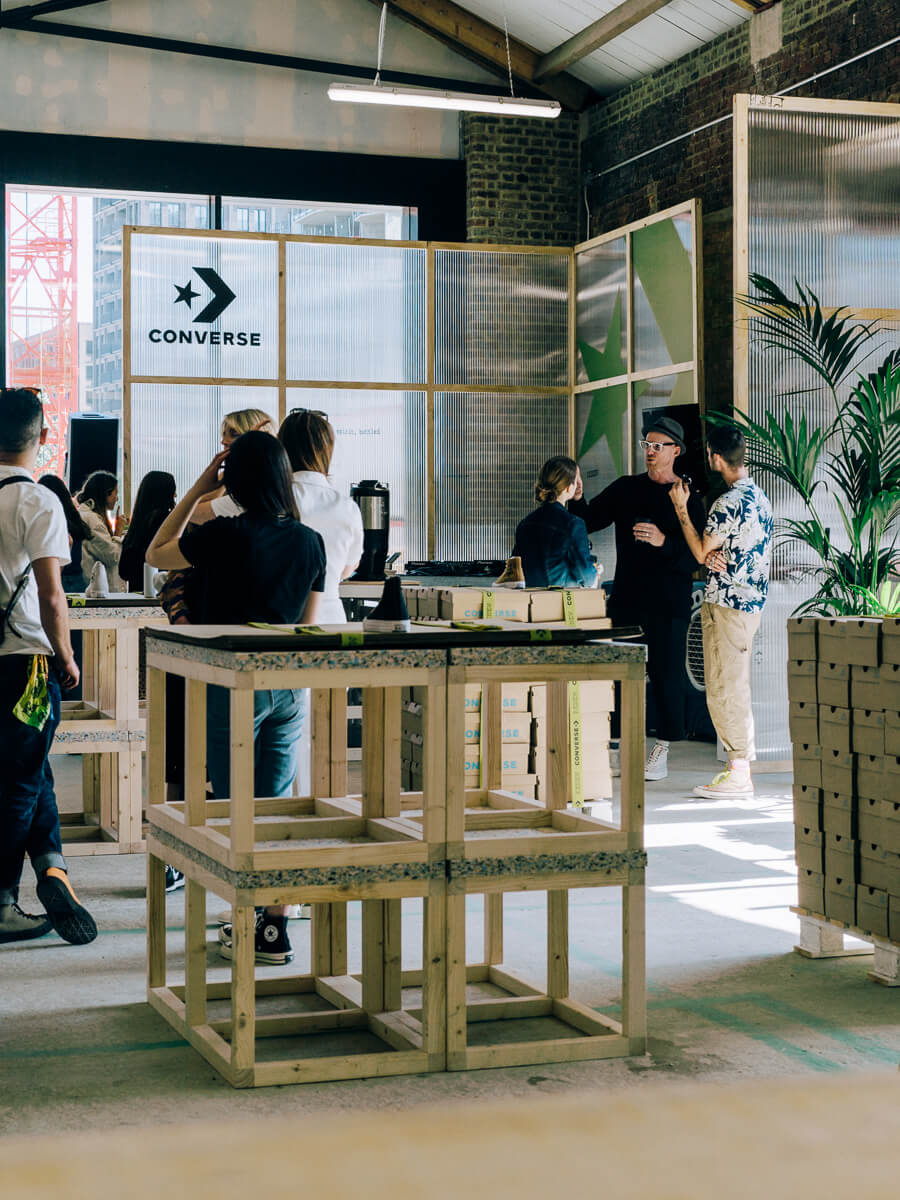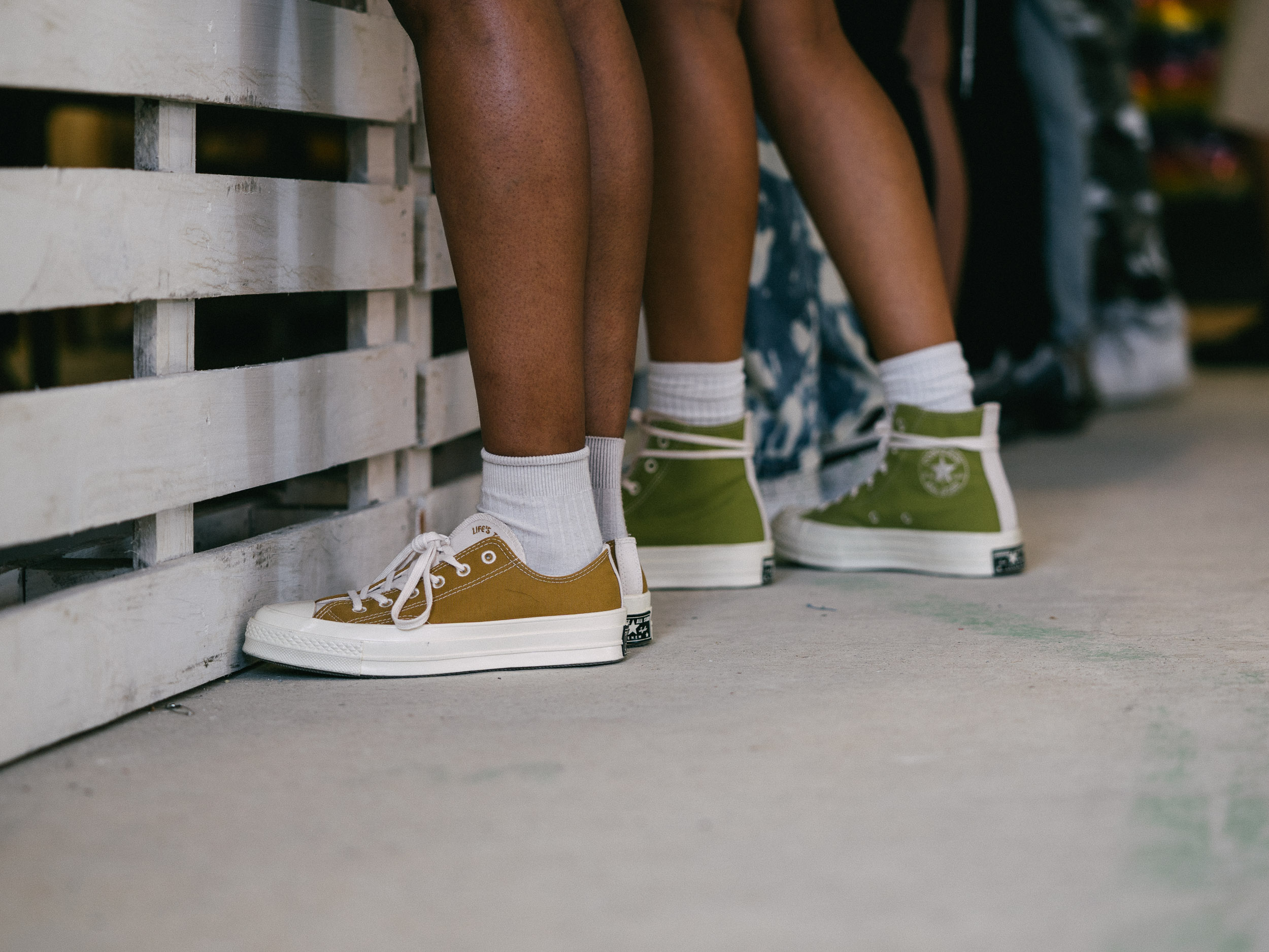 L’initiative Renew : le nouveau projet environnemental de Converse. Sur les lieux, nous découvrons l’installation, mettant en lumière les neuf nouveaux modèles Converse Renew Canvas dont six Chuck Taylor All Star et trois Chuck 70, tous déclinés dans de coloris soft reprenant une empreinte écologique. Chacune des paires de la collection arbore le message « Life’s too short to waste » montrant la profonde volonté de la marque à l’étoile à s’orienter dans une direction beaucoup plus durable. Réalisée en partenariat avec Thread International, cette Canvas est donc le premier minerai de la stratégie de Converse à voir le jour. Notre day s’est bouclée avec un workshop animé par l'artiste Lava La Rue pour customiser une palette de vieux vêtements.