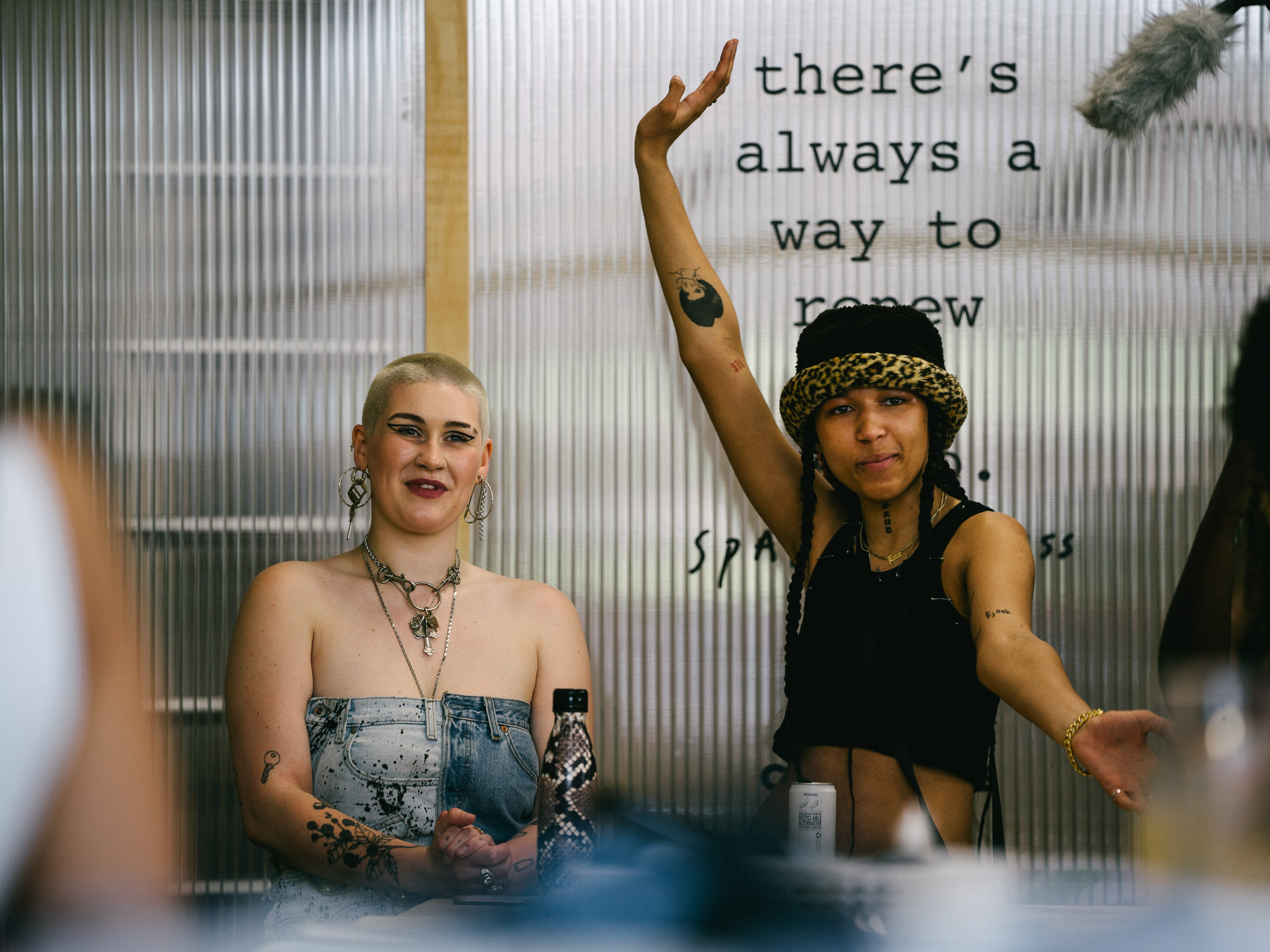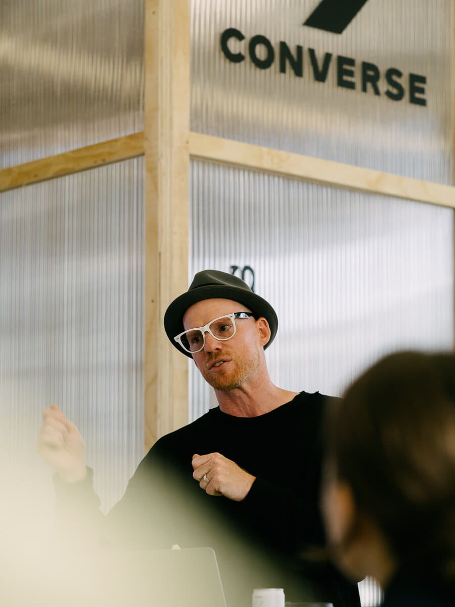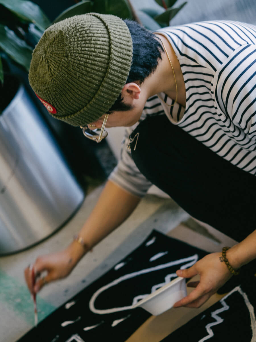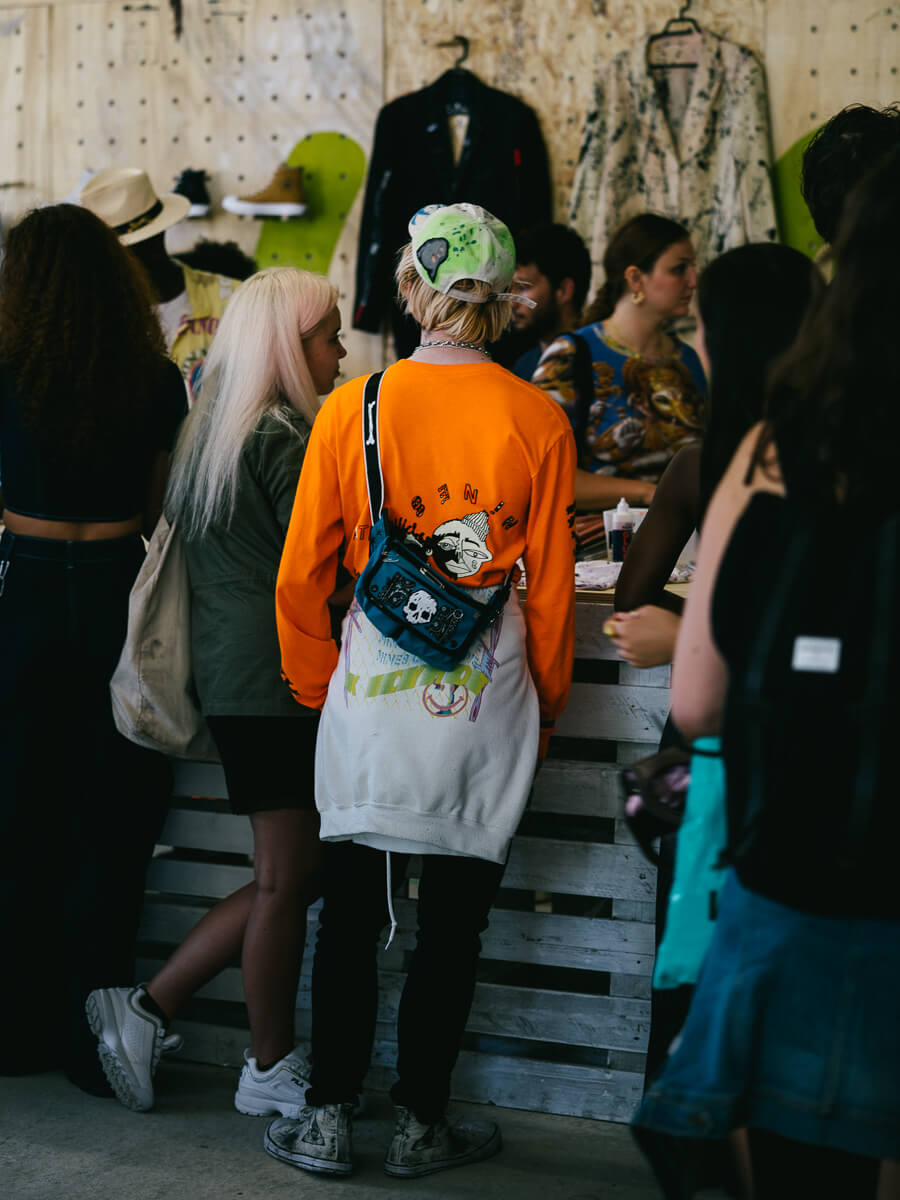 L’initiative Renew : le nouveau projet environnemental de Converse. Sur les lieux, nous découvrons l’installation, mettant en lumière les neuf nouveaux modèles Converse Renew Canvas dont six Chuck Taylor All Star et trois Chuck 70, tous déclinés dans de coloris soft reprenant une empreinte écologique. Chacune des paires de la collection arbore le message « Life’s too short to waste » montrant la profonde volonté de la marque à l’étoile à s’orienter dans une direction beaucoup plus durable. Réalisée en partenariat avec Thread International, cette Canvas est donc le premier minerai de la stratégie de Converse à voir le jour. Notre day s’est bouclée avec un workshop animé par l'artiste Lava La Rue pour customiser une palette de vieux vêtements.